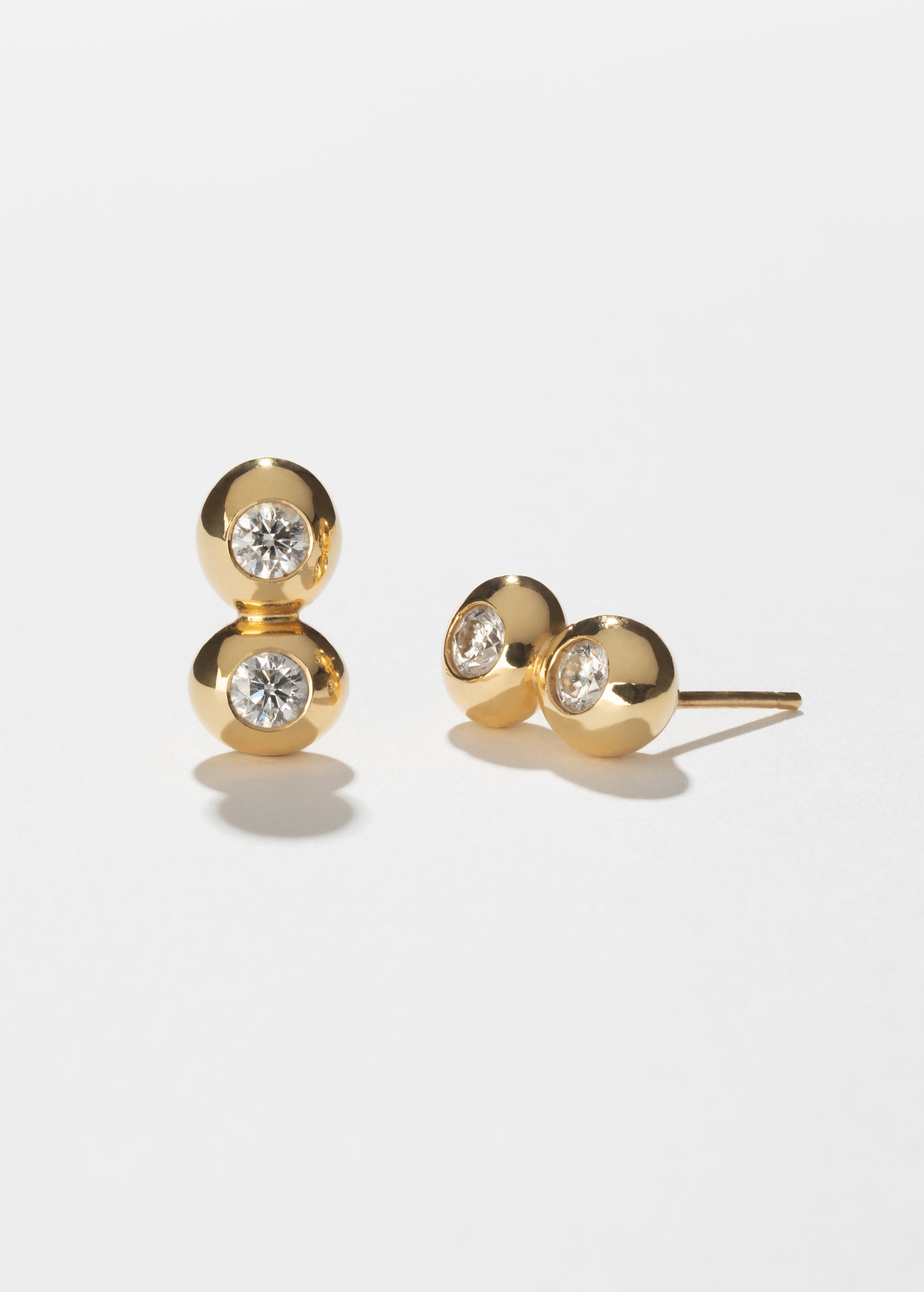 Uma peça substancial com um diamante oval de 0,30 quilates cravejado em bisel. O brinco imperfeito é uma ode à sensibilidade do design modernista. Fabricado em ouro amarelo de 18k, com aro de aproximadamente 0,6 mm x 1,3 mm na parte frontal e 0,9 mm na parte posterior.