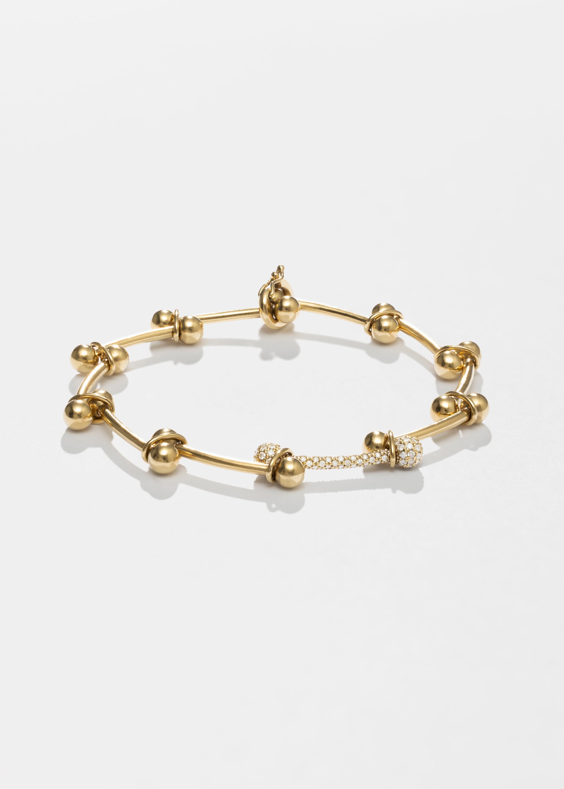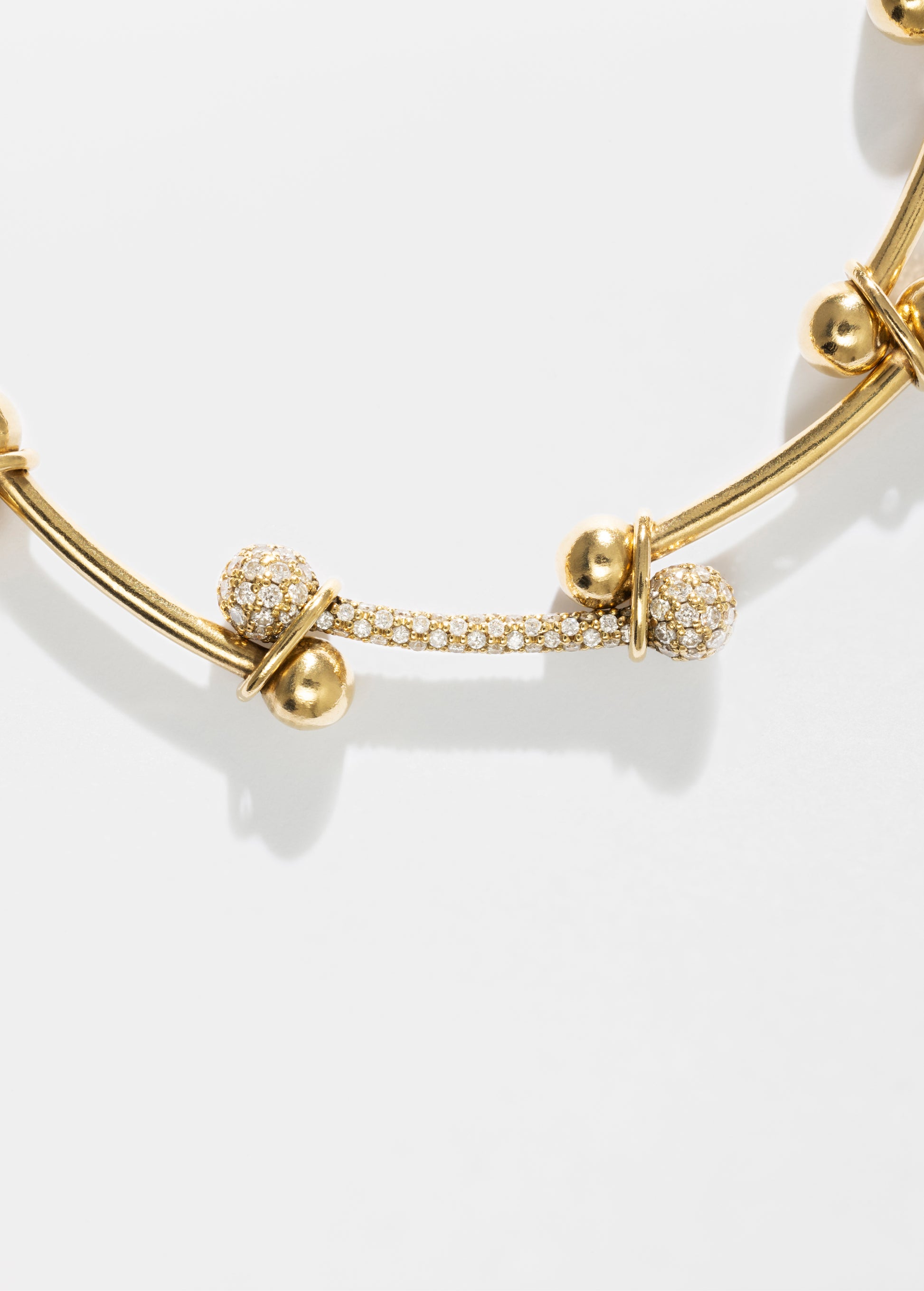 uma pulseira deslumbrante com um elo pavé desenhado em ouro de 18k com 143 diamantes com um peso de 0,90 ct.