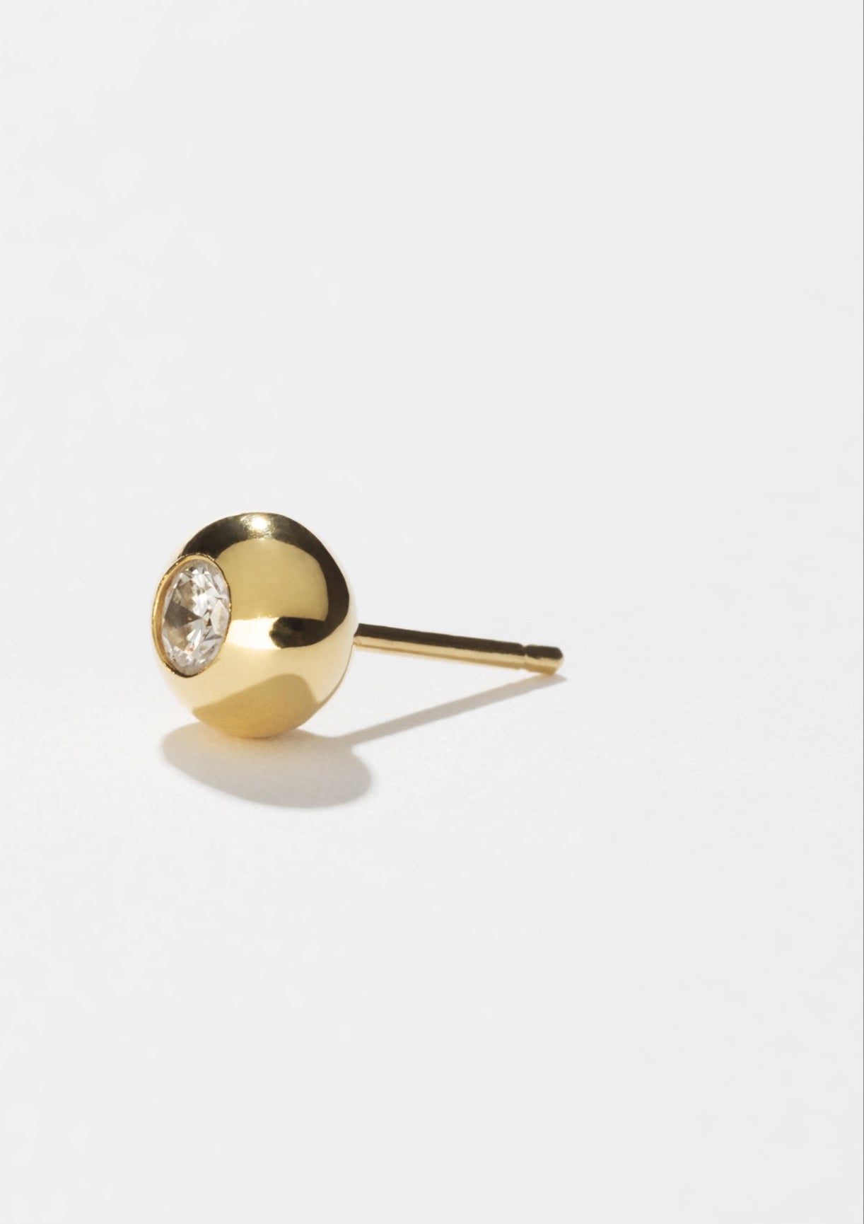 Uma peça substancial com um diamante oval de 0,75 quilates engastado em aro. O brinco imperfeito é uma ode à sensibilidade do design modernista. Fabricado em ouro amarelo de 18 quilates, com aro que mede aproximadamente 0,6 mm x 0,7 mm na frente e afunila para 0,9 mm na parte posterior.