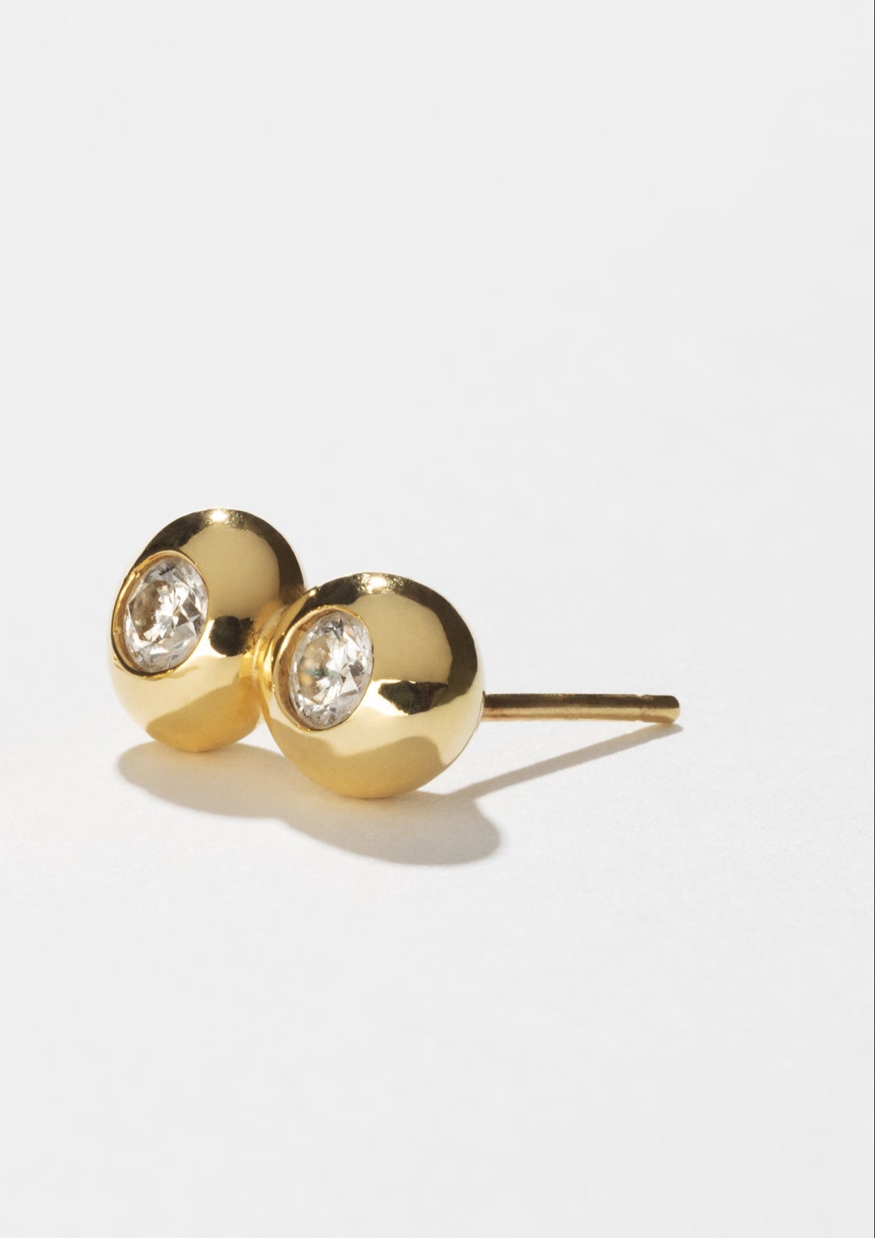 Uma peça substancial com um diamante oval de 0,15 quilates cravejado em bisel. O brinco imperfeito é uma ode à sensibilidade do design modernista. Fabricado com aro em ouro amarelo de 18 quilates, que mede aproximadamente 0,6 mm x 1,3 mm na parte frontal e afunila para 0,9 mm na parte posterior.